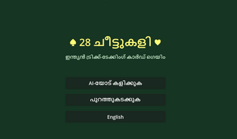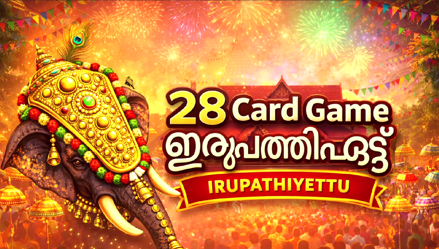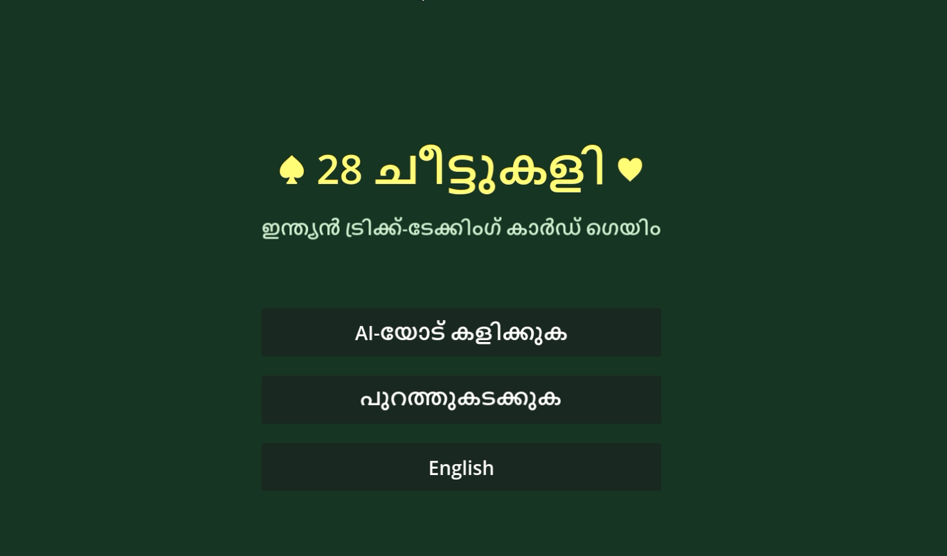 28 is a traditional card game played across Kerala. It is a trick based game that depends on teamwork, memory, and smart bidding.
