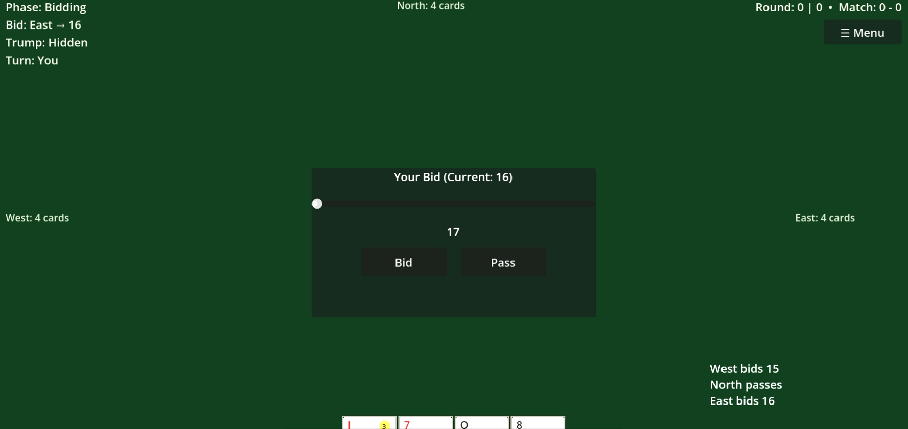 ബിഡ് ചെയ്ത് ആര്ക്ക് കളി നിയന്ത്രിക്കാമെന്ന് തീരുമാനിക്കുന്നു.